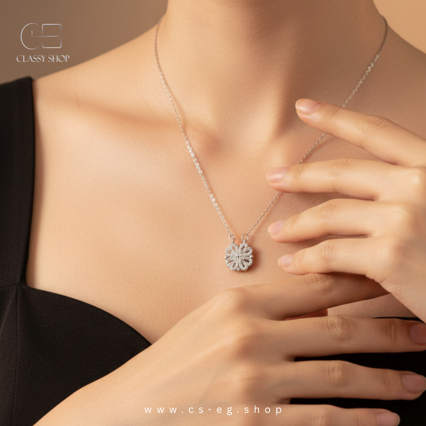 ✨ Crystal Heart Necklace – Two Styles in One ✨An elegant heart-shaped silver necklace adorned with sparkling crystal, designed to be worn in two different ways