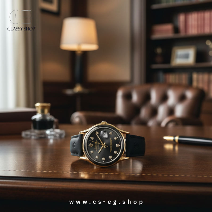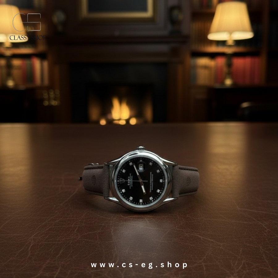 اختبر الفخامة الحقيقية مع ساعة ROLEX هاي كوبي جلد شمواه المصممة بدقة لتمنحك نفس الهيبة والشياكة في كل مناسبة.