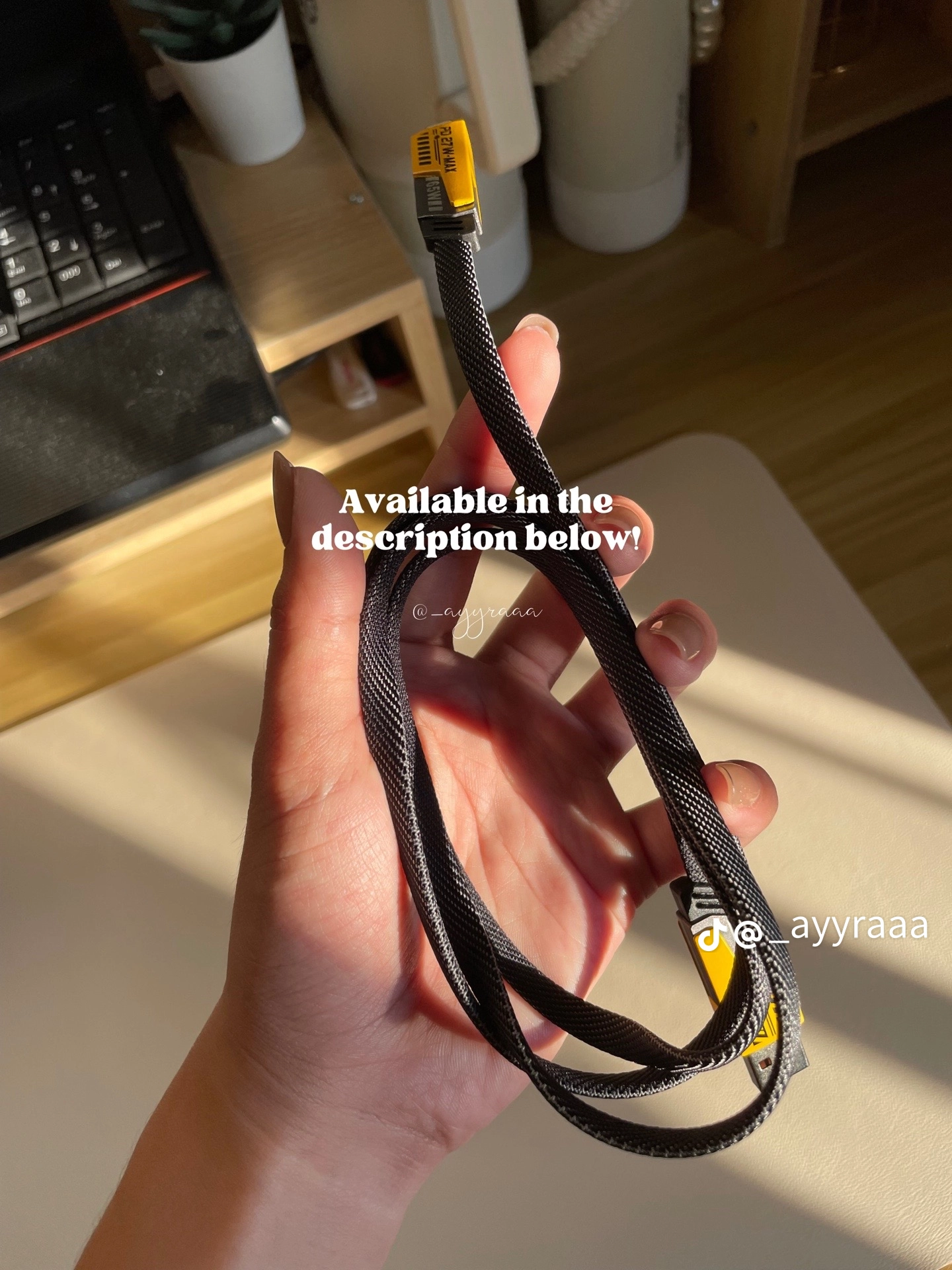 كابل مضفّر ومعدني – متين جداً ويستحمل الاستخدام اليومي.