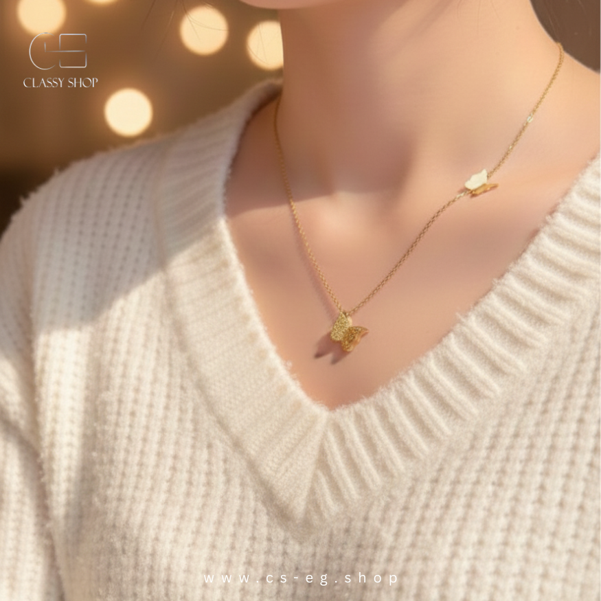 🦋 خفّة وأناقة في قطعة واحدة! رمز للجمال والحرية، خفيفة على الرقبة وتليق بكل الستايلات