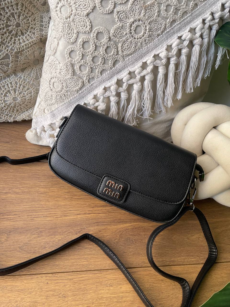 الشنطة ليها قفل أمامي معدني مميز بشعار min min، ومعاها سير كتف قابل للتعديل علشان تلبسيها بالطريقة اللي تريحك.