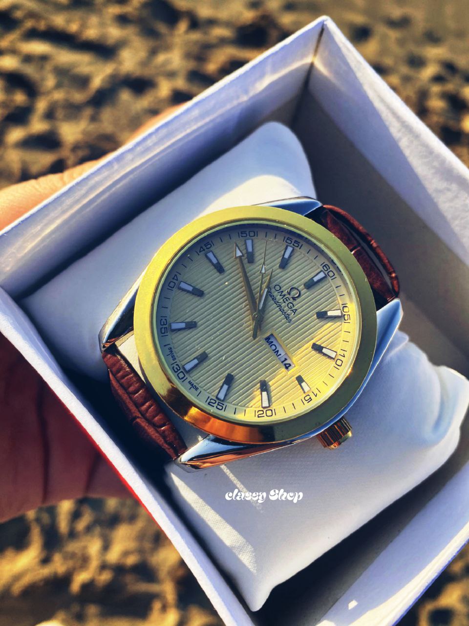 • الساعة تاتي بالبوكس و الشنطة الخاصة ببها