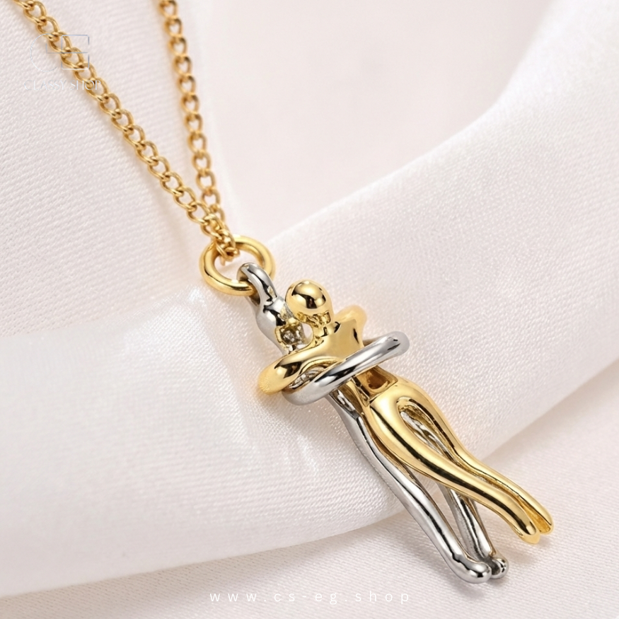 💞 سلسلة شخصين في حضن واحد – رمز الحب والأمان 💞 سلسلة مميزة بتصميم رقيق على شكل شخصين بيحضنوا بعض، بتجسد أصدق مشاعر الحب والاحتواء والدفء �