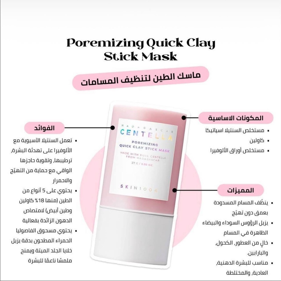 🧼 تنضيف عميق للمسام → يزيل الزيوت الزايدة + الجلد الميت + الأوساخ.